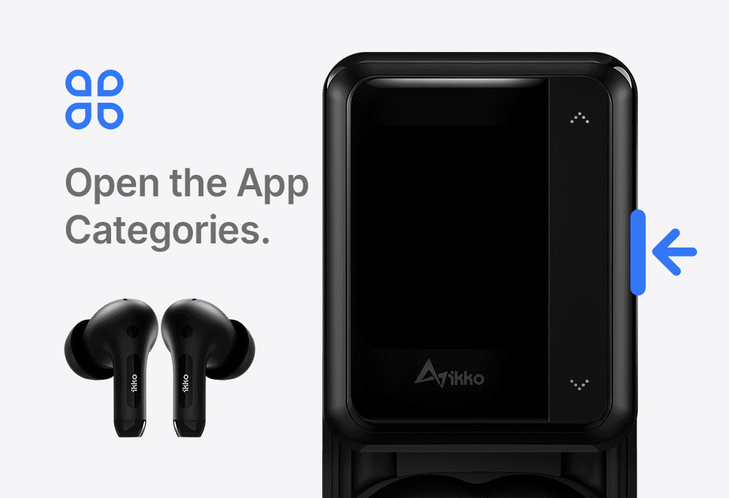 2. Swipe to left from the home to open App Categories, scroll down to find the iKKO store, open it to locate the app you wish to download. Plus, more apps are available in the evolving iKKO Store!